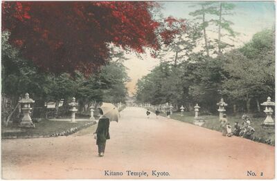 Japonsko - Japan (bar. fotopohled) - Kitano Temple, Kyoto (svatyně, chrám, zahrada, Kjóto)
