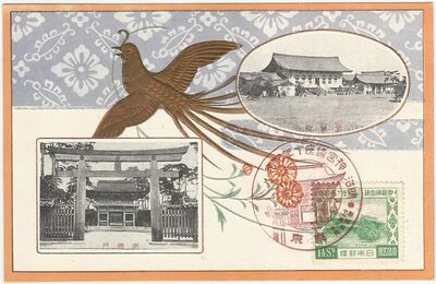 Stará pohlednice - Japonsko - Tokyo (okénkový - zdobený pohled + razítko - známka 1930)