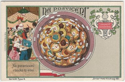 Pohlednice na hrací strojky - litografie - Na posvícení