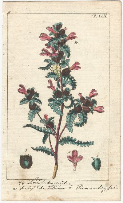 Všivec bahenní - Pedicularis palustris (botanika, herbář) - kolorovaná mědirytina, kol. r. 1780