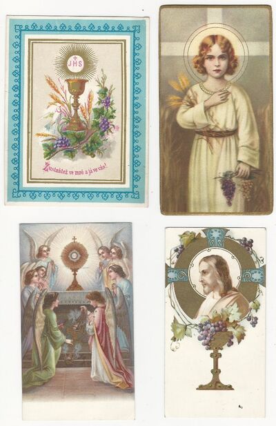 Svatý obrázek (litografie) - 4 x Svatí, andělé