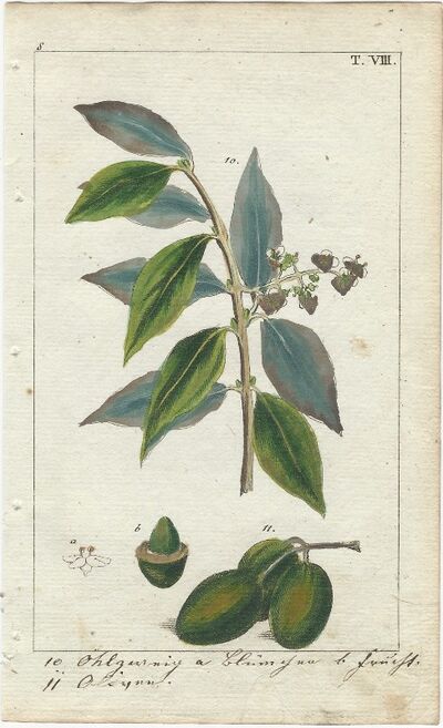 Skořicovník - Cinnamomum (botanika, herbář) - kolorovaná mědirytina, kol. r. 1780