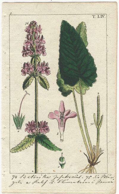 Čistec velkokvětý - Stachys grandiflora (botanika, herbář) - kolorovaná mědirytina, kol. r. 1780
