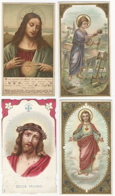 Svatý obrázek (litografie) - 4 x Svatí, Ježíš