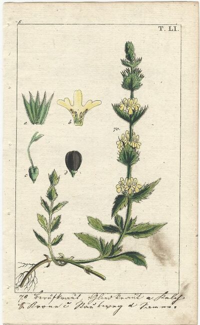 Čistec přímý - Stachys recta (botanika, herbář) - kolorovaná mědirytina, kol. r. 1780
