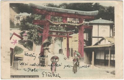 Japonsko - Japan (bar. fotopohled) - Suwayama inari at Kobe